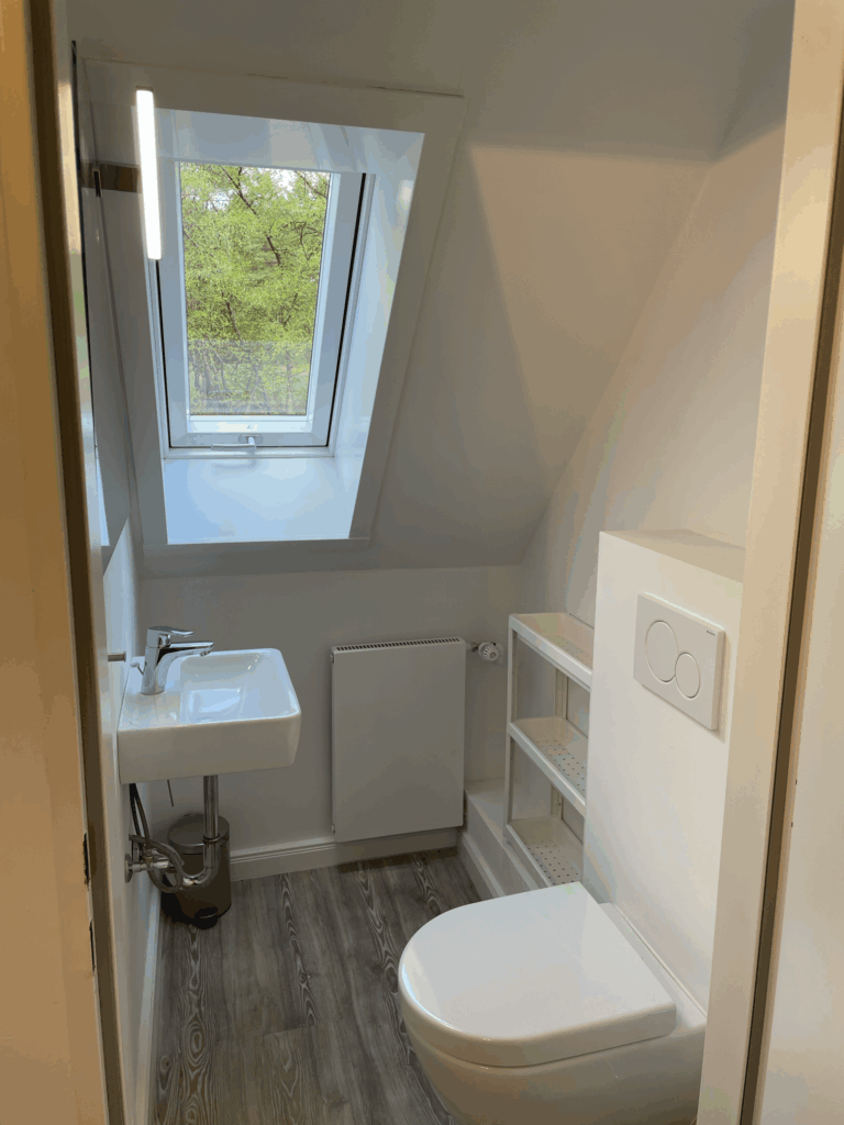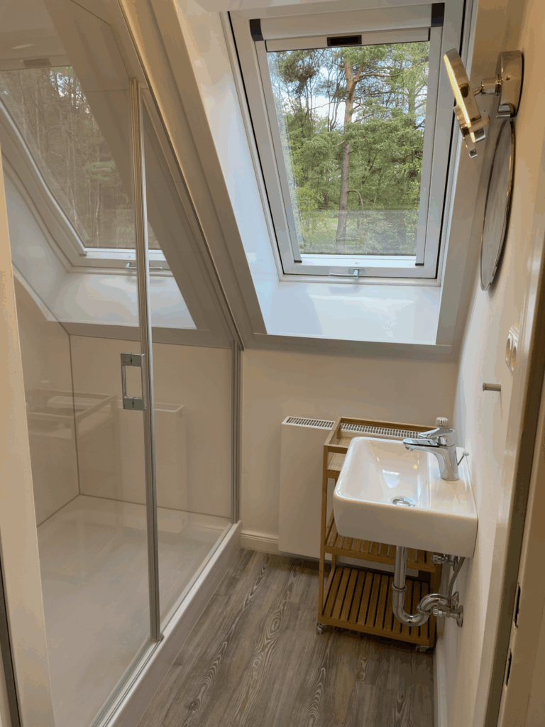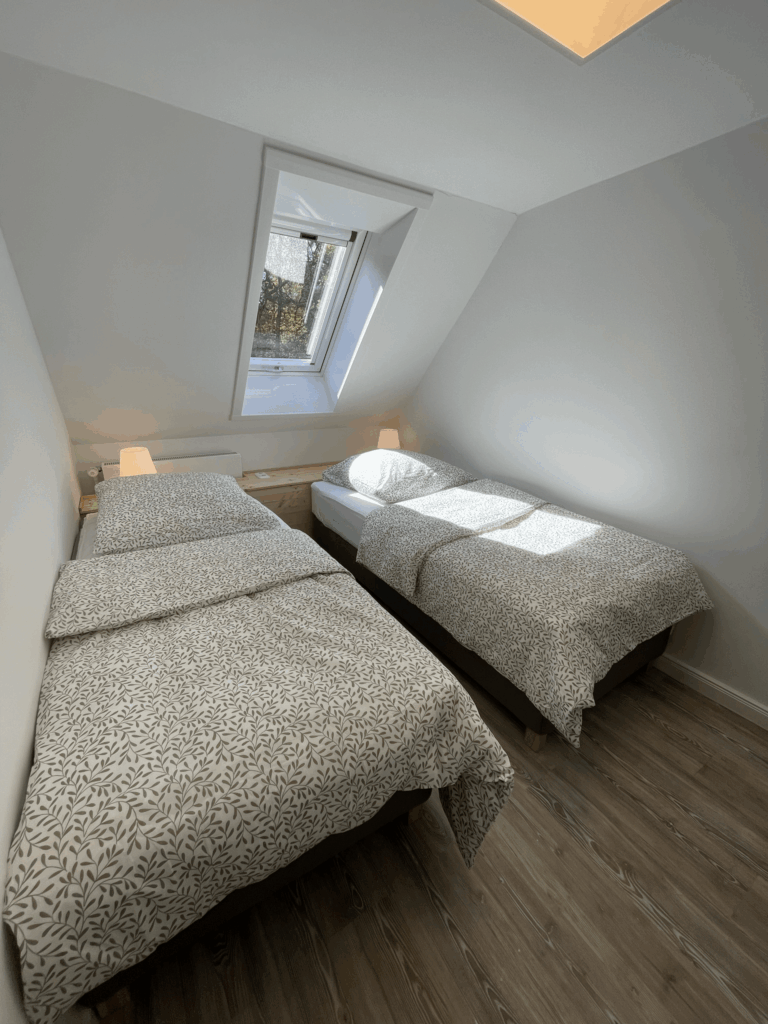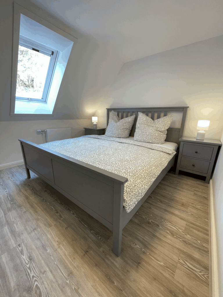 Die Schlafzimmer sind mit hochwertigen Dachschrägenfenstern ausgestattet, die voll verdunkelt werden können.