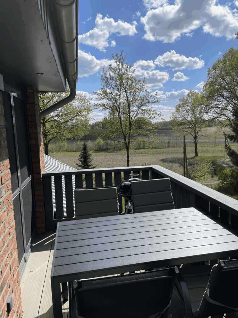 Unsere Ferienwohnung Hermine befindet sich im Obergeschoss des Haupthauses und ist eine traumhafte Wohnung für Familien oder Gruppen von 4-6 Personen. Ihr habt einen tollen Balkon ganz für euch allein.